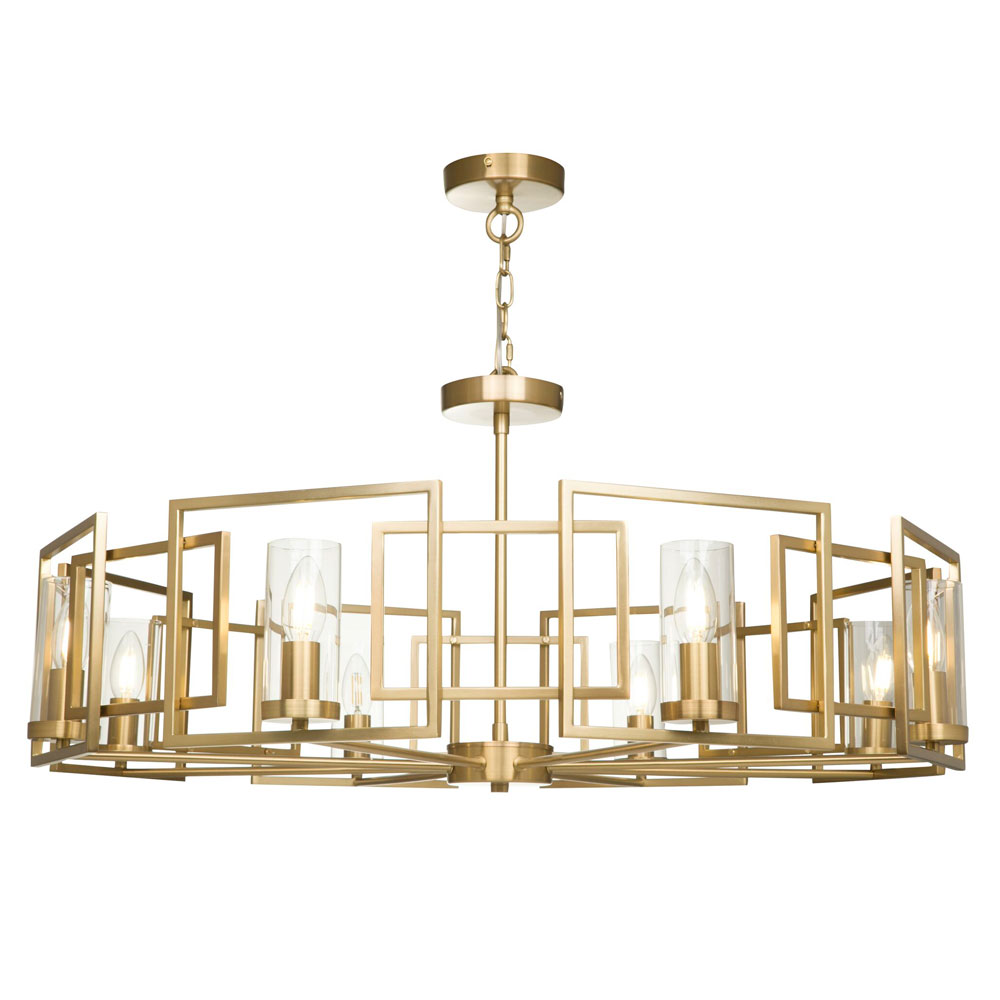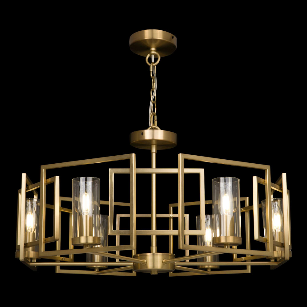 Златист пендел с регулируема височина, изработен от метал с геометрични линии и стъклени тела Maytoni, серия Bowi.