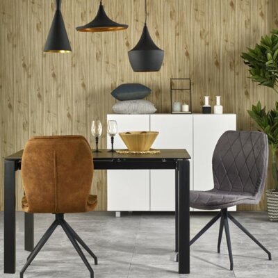 Черна трапезна маса от стъкло и стомана Анри