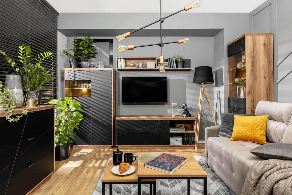 Изберете ТВ шкаф, скрин, стенен рафт, висок или нисък шкаф със стъклена витрина и двукрилен гардероб и придайте актуална и интригуваща визия на всекидневната.