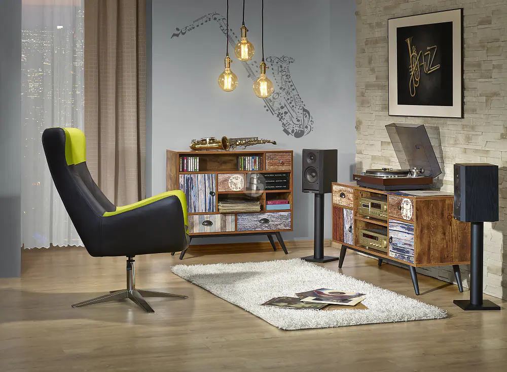 Всички артикули от колекция Мах са издържани в индустриален стил със закачливи цветове, подходящи за любители на нестандартното. Черните метални крачета, корпус в топъл дървесен цвят и предна част с разноцветни шарки, са допълнени от метални старинни дръжки.