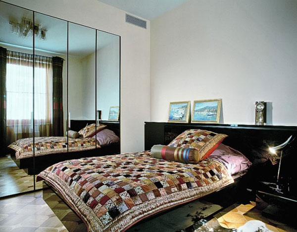 За да уголемите оптически малката спалня, използвайте предимно светли цветове и разположете огледала на поне две стени или пък си вземете гардероб с плъзгащи се огледални врати.