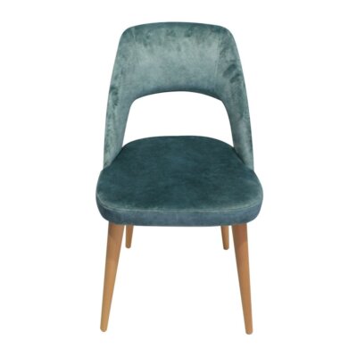 Трапезен стол с мека дамаска и дървени крака (5 цвята)